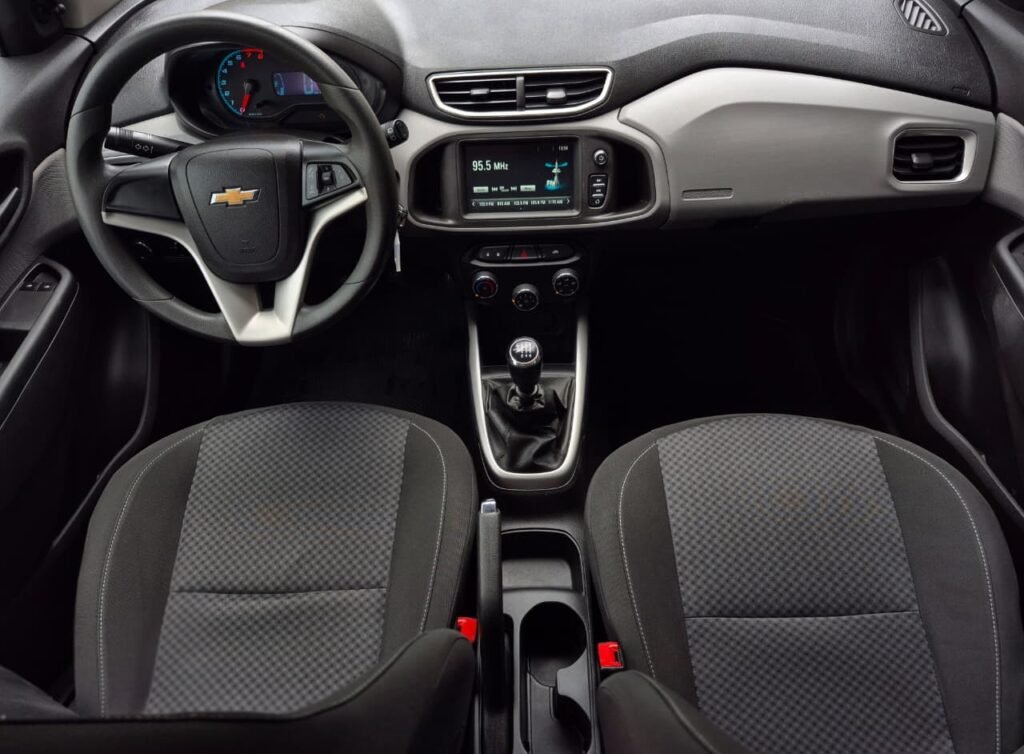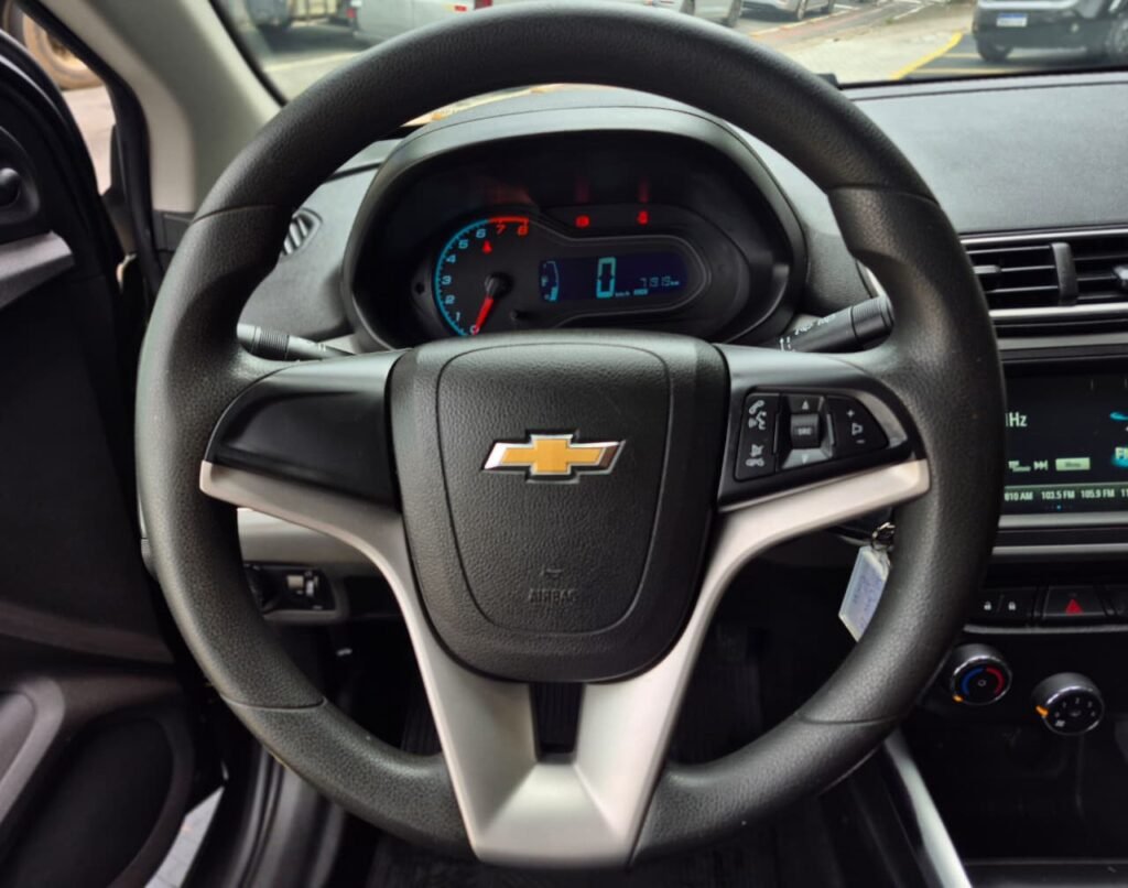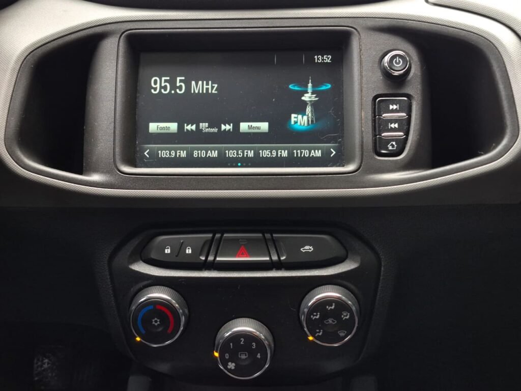 Na parte de tecnologia e praticidade, o Onix oferece rádio, conexão Bluetooth, entrada USB e tomada 12V, permitindo integração com o celular e mais conveniência no dia a dia. O conta-giros ajuda no controle da condução, tornando a experiência ao volante mais completa.