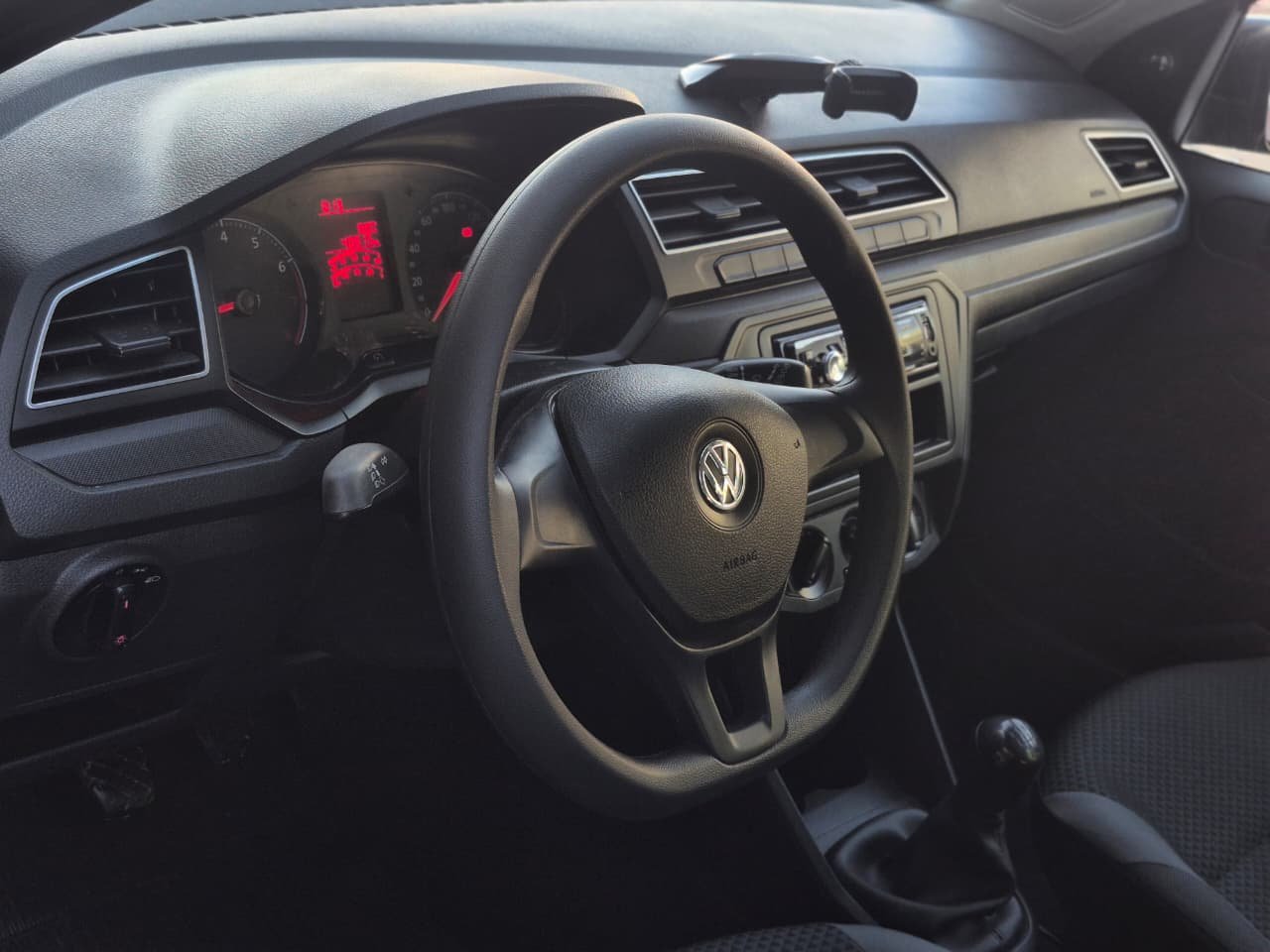 Na parte de funcionalidade, o Gol vem equipado com itens essenciais como conexão USB, tomada de 12V, conta-giros e termômetro do líquido de arrefecimento, oferecendo praticidade e controle das informações do veículo durante a condução.